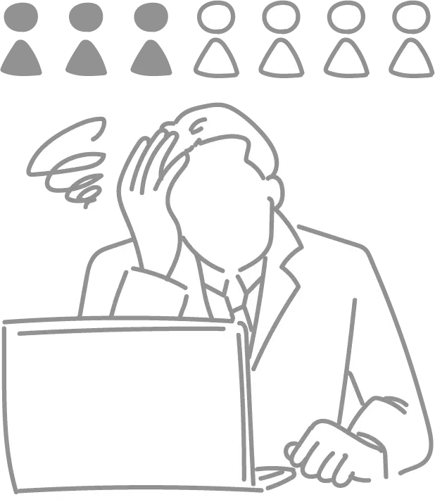 急な退職で人手不足になると、給与計算や手続きが滞り業務負荷が増大。 代替人材が見つからないと会社全体に影響することも。